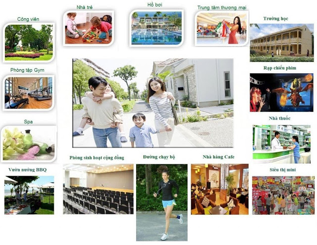 - Tiện ích hoàn hảo và một thiên đường mua sắm, khu gym, spa được đầu tư trang thiết bị hiện đại cùng đội ngũ chuyên viên tư vấn chuyên nghiệp, bể bơi bốn mùa ngoài trời xây dựng theo tiêu chuẩn Olympic rộng khoảng 1000 m2, siêu thị, khu shopping, bar & coffee, salon tóc & spa, quảng trường La Mã, đồi cỏ nhân tạo, thác nước, chòi ngắm cảnh cùng các hệ thống tiện ích dành cho người già và trẻ em.