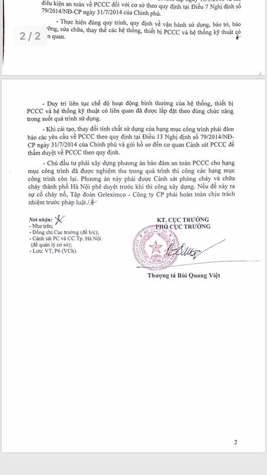 Văn bản được đóng dấu về thực hiện PCCC tại An Bình City